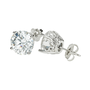 Eternal Scroll 4.08 IGI Lab-Grown VVS2 E Round Diamond Stud Earrings - 14k White Gold