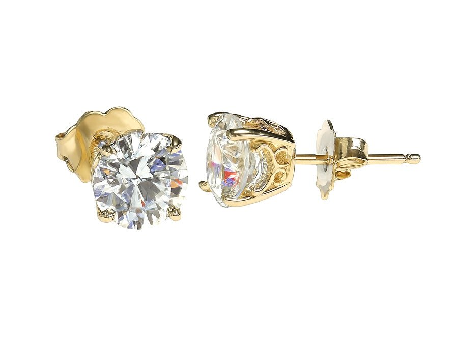 Eternal Scroll 4.04 Ct IGI Lab-Grown Round VVS2 E Diamond Stud Earrings -14k Yellow Gold